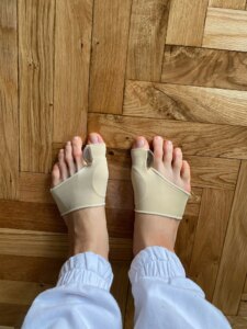 I wear it and wear my shoes, so I feel like my toes are correct, so I like it.